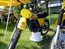 I set my goals after that, I wanted to be at all the races, I wanted to start all motos, finish all motos, don’t fall and get hurt, have fun. I accomplished all of them each and every time, while finishing last every time. The 125 just isn’t enough bike. I located a 1976 250 C and was the winning E-bay bidder! Another $ 1500.00 for engine, shock, fork work, tires and I’m racin’!
