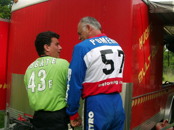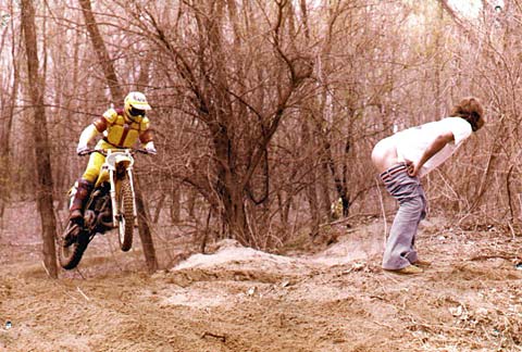 Dave Webb The fans cheer as the flagman extracts the left handle bar from the unfortunate riders rear, allowing him to rejoin the race!