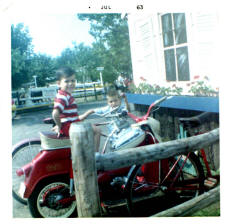 Just as I was beginning to get the hang of things, a strange twist of fate stepped in; the race was at Claverack. I can't remember how I did in the first race, but I qualified and made it to the second moto. On the first lap of that race, I was running fairly close to the front of the pack when I fell coming off of a drop-off down hill jump. I was a bit dazed but was all right. My bike lay perpendicular to the track. As I picked it up, another rider came off that same drop off and squarely with his front wheel, hit the side of my bike. I was looking right at him as he came over his handlebars. His helmet hit me square in the face. I had on a Pacific "Face Fender" at the time, but it really did nothing for me. I woke up in an ambulance on my way to the hospital. I had lost six of my top front teeth in one shot. Both lips had to be stitched up inside and out. I couldn't see a dentist until the swelling had gone down which took about a week. Even after seeing a dentist, there wasn't much they could do for me for almost a month. The pain and swelling was excruciating. That was it for my racing, as my parents would have no part of it. They did let me keep the bike, and I rode it around the property where we lived. In 1978 we moved back to New Jersey and I sold the bike when I began going to school in NY City. In 1995 I went to a dealership with my friend Jerry Cantone.
